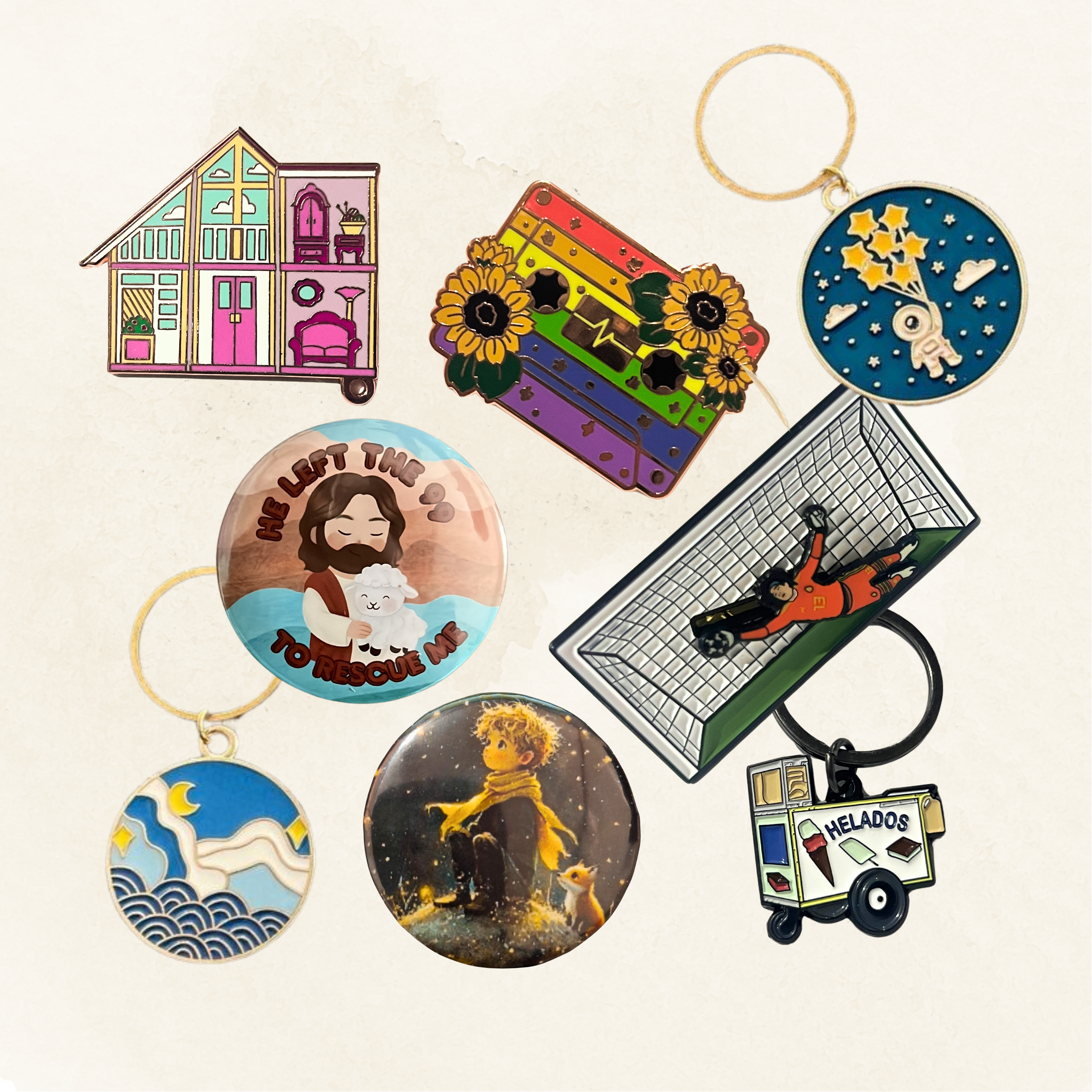 Personalized keychains and pins can be enameled, unglazed, methacrylate, or rubber, offering variety in texture and style. Perfect for promoting your brand, giving as gifts, or collecting, with durable and eye-catching designs. Buttons can be customized with your desired images or quotes- the possibilities are endless.